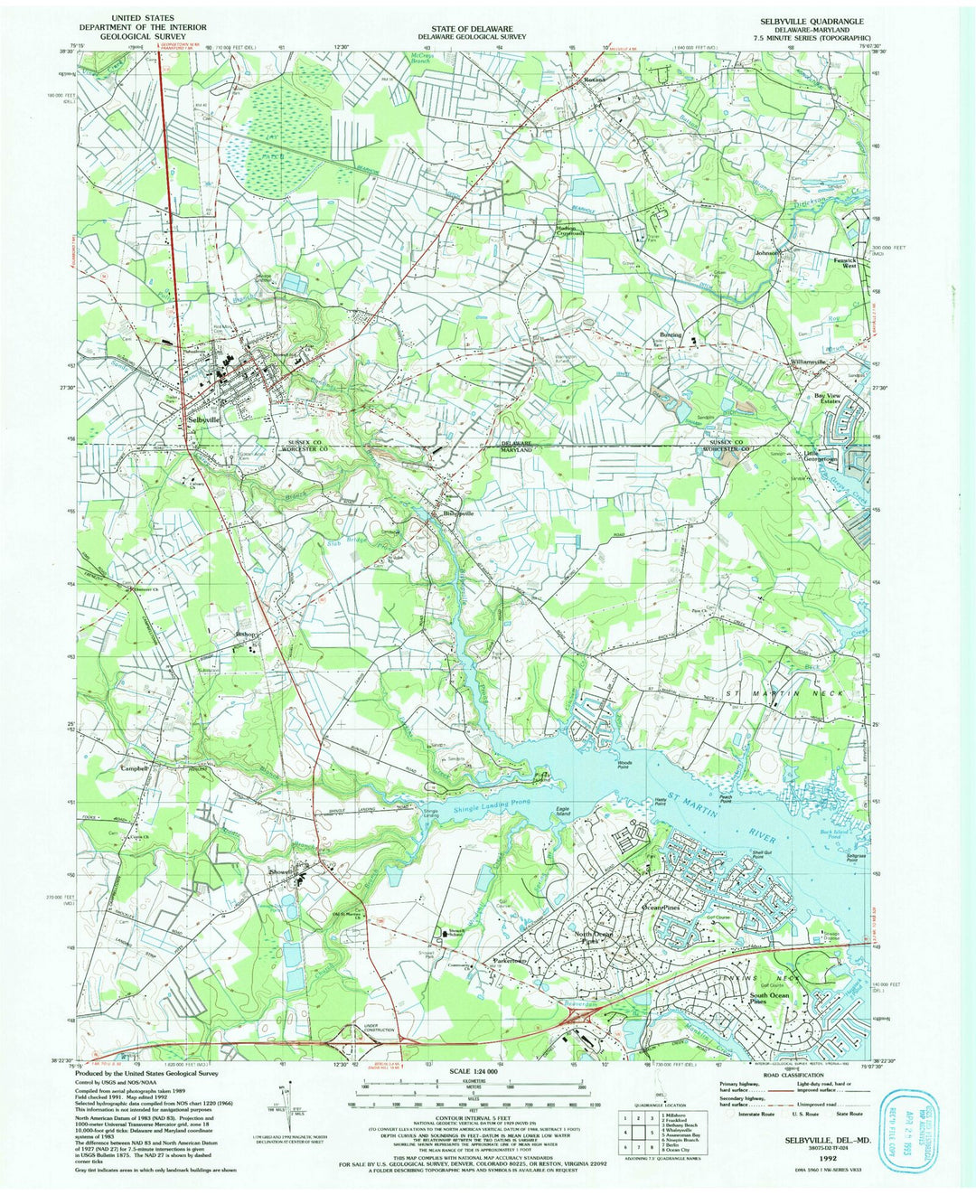 Classic USGS Selbyville Delaware 7.5’x7.5′ Topo Map – MyTopo Map Store